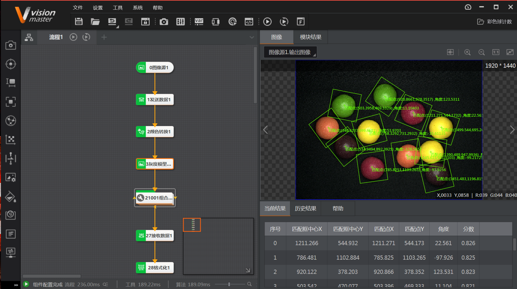 高效定位工具匹配工具,能夠克服樣品平移、旋轉(zhuǎn)、縮放和光照不同所帶來(lái)的差異,快速準(zhǔn)確查找圓、直線、斑點(diǎn)、