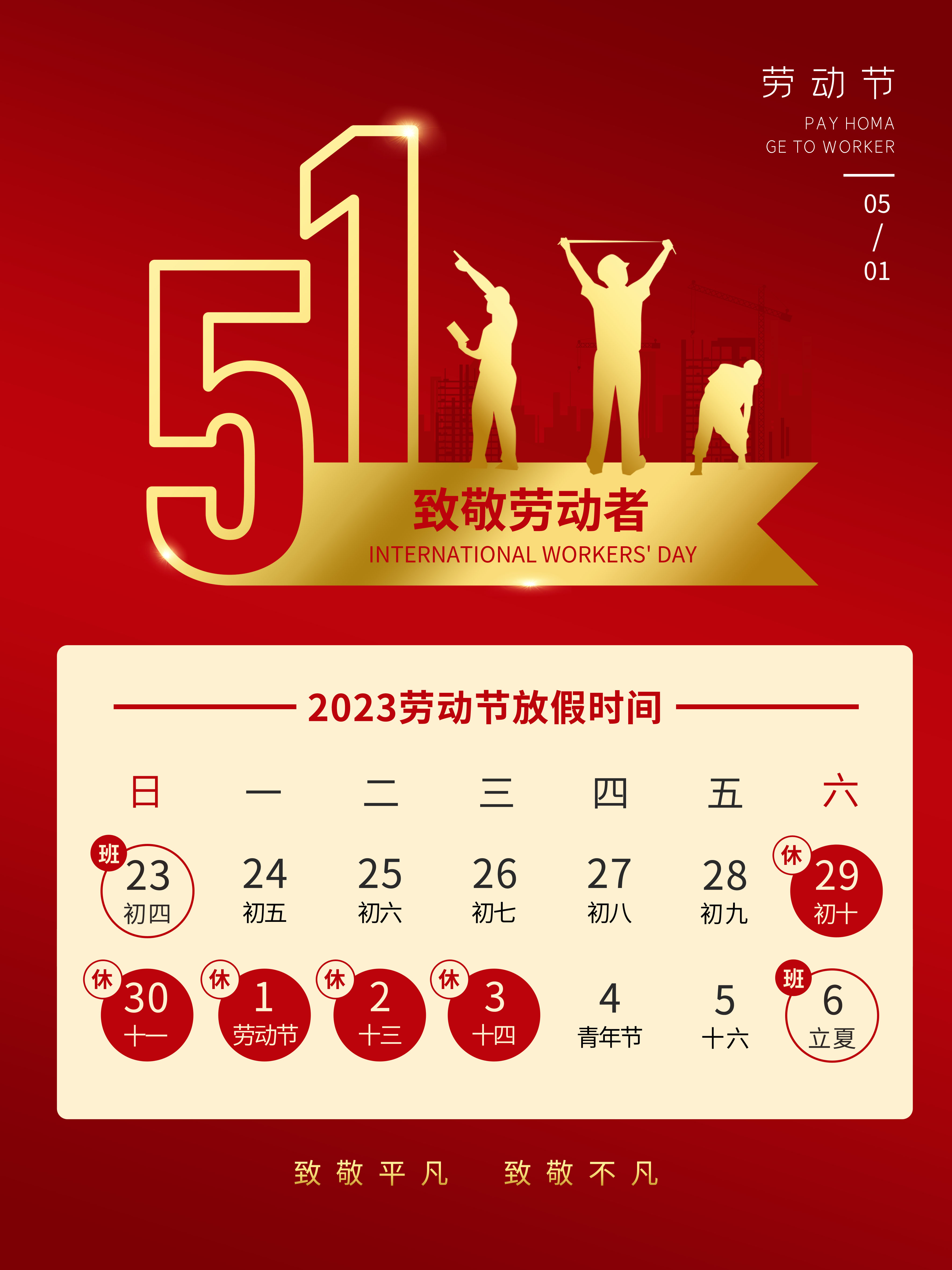 2023年五一假期安排