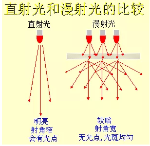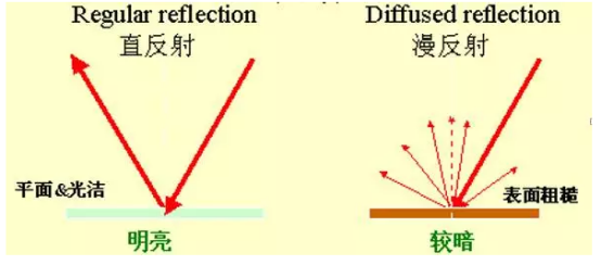 物體反射光線有兩種不同的反射特性:直反射和漫反射