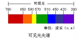 光譜中很大的一部分電磁波譜是人眼可見的,在這個波長范圍內(nèi)的電磁輻射被稱作可見光,范圍在400nm至760nm之間(有的人可以觀測到380nm-780nm),即從紫色380nm到紅色780nm。