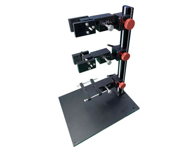相機夾具范圍:26-76mm 棱鏡夾具范圍:16-66mm 鏡頭夾具范圍:8-80mm 相機夾具水平延伸范圍:0-43mm 棱鏡夾具水平延伸范圍:0-43mm 底板:400*320*10mm 主桿高度:500mm