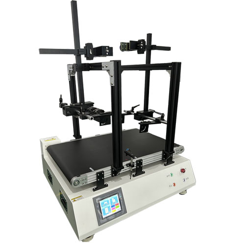 部脈沖信號控制傳送帶啟動和停止,配合多組相機(jī)架和光源架,平臺可以用于線陣相機(jī)和面陣