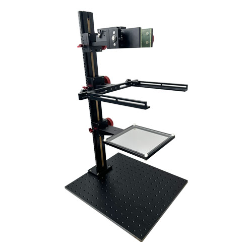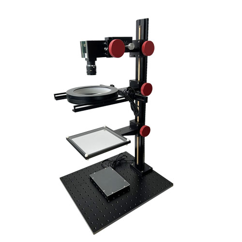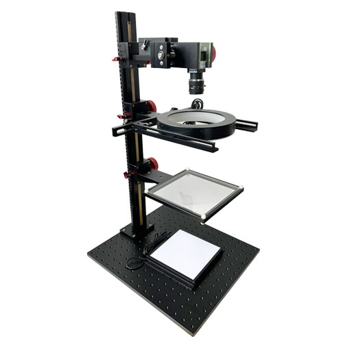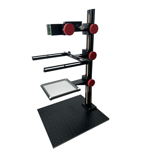 采用齒輪齒條傳動,相機夾具可以前后拉伸,光源架可夾持各種光源,相機