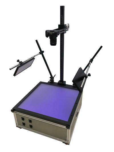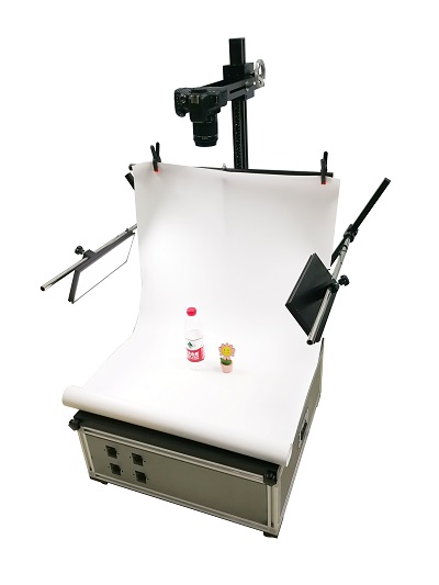 Monster600610LBF 翻拍架底部采用無(wú)頻閃燈箱,亮度均勻,可調(diào)節(jié),2個(gè)補(bǔ)光燈功率16W,亮度可調(diào)。玻璃卡槽上層是細(xì)砂鋼化玻璃,下層是帶顏色亞克力板。相機(jī)手搖控制上下移動(dòng),主桿1m,帶刻度。光源架加有緊固裝置,可以調(diào)節(jié)光源傾斜角度。翻拍架配有T形背景架和白色PVC布,用戶可以調(diào)節(jié)背景架高度。