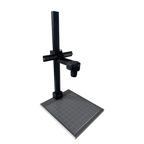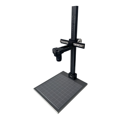 Monster5280B 采用不反光灰色木底板,表面帶有網(wǎng)格及厘米/英寸刻度。主桿采用鋁材料,表面進行黑色氧化處理,帶有厘米/英寸刻度。上下傳動采用齒條齒輪結(jié)構(gòu),能調(diào)節(jié)松緊度,旋鈕把手采用不銹鋼材料,單手即可升高和降低相機的高度,相機固定架帶1/4螺絲,固定結(jié)構(gòu)可以左右移動,移動范圍±17cm,左右移動任意位置可固定。