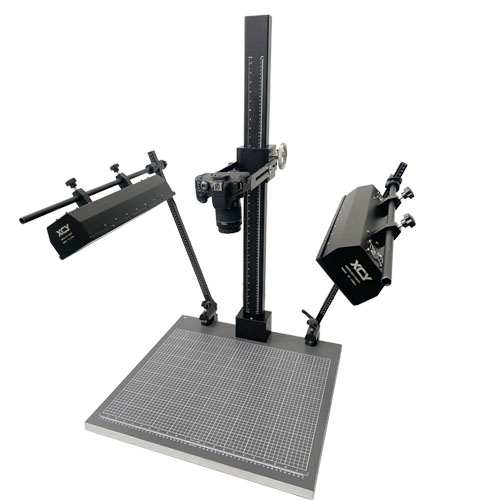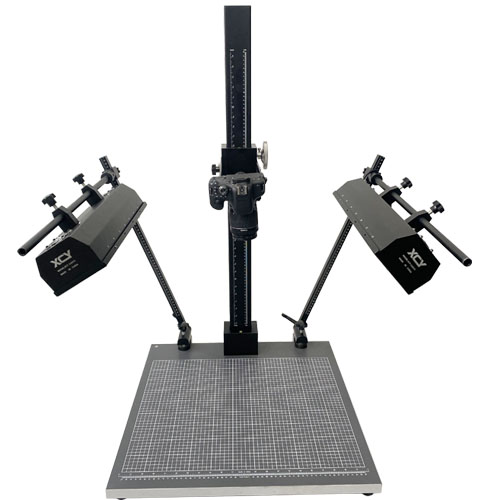 Monster5080 DRT 采用不反光灰色木底板,表面帶有網(wǎng)格及厘米/英寸刻度。主桿采用鋁材料,表面進(jìn)行黑色氧化處理,帶有厘米/英寸刻度。上下傳動采用齒條齒輪結(jié)構(gòu),能調(diào)節(jié)松緊度,旋鈕把手采用不銹鋼材料,單手即可升高和降低相機的高度,固定相機拉伸臂可調(diào)節(jié)相機與主桿之間距離,前后拉伸范圍0-25cm,拉伸臂帶英制1/4螺絲,帶雙光源打光,光源支架底座采用防滑結(jié)構(gòu),光源架可以上下調(diào)節(jié)高度,穩(wěn)固且方便調(diào)節(jié),采用歐司朗36W燈管,色溫5400K,演色性:90-100,方便替換。