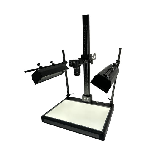簡介:Monster400590TAC使用鋁合金材料,底部采用無影光源,高透光學玻璃,光源無頻閃,發(fā)光面400*590mm,顯指:96,色溫:5300-5900K,高亮度,且亮度可調,底部腳墊高度可調。主桿采用鋁材料,表面進行黑色氧化處理,帶有厘米/英寸刻度。上下傳動采用齒條齒輪結構,能調節(jié)松緊度,旋鈕把手采用不銹鋼材料,單手即可升高和降低相機的高度,相機前后調節(jié)采用齒輪傳動,手擰把手控制前后移動,前后移動范圍0-160mm,帶英制1/4螺絲,雙光源補光,光源支架底座采用防滑結構,光源架可以上下調節(jié)高度,穩(wěn)固且方便調節(jié),采用歐司朗36W燈管,色溫5400K,演色性:90-100,配有偏光片,射出偏振光,配合鏡頭偏振片,可以消除部分反光。