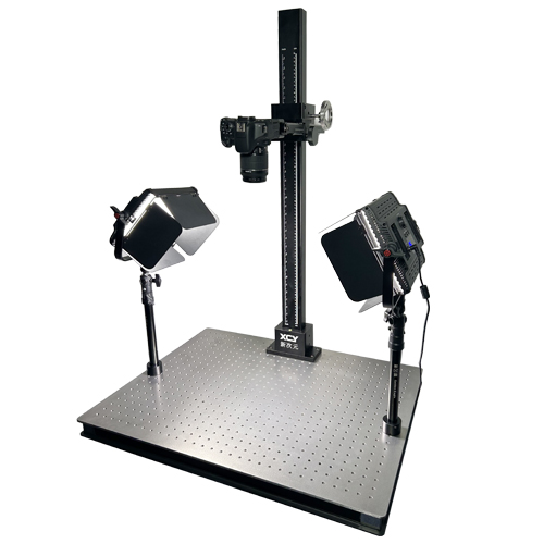 Monster80CPT采用光學(xué)面包板,表面帶有25*25mm間距M6螺紋孔陣列。主桿采用鋁材料,表面進(jìn)行黑色陽極氧化處理,帶有厘米/英寸刻度。主桿位置可變,上下傳動(dòng)采用齒條齒輪結(jié)構(gòu),能調(diào)節(jié)松緊度,旋鈕把手采用不銹鋼材料,單手即可升高和降低相機(jī)的高度,相機(jī)前后調(diào)節(jié)采用齒輪傳動(dòng),手?jǐn)Q把手控制前后移動(dòng),前后移動(dòng)范圍0-160mm,帶英制1/4螺絲,光源亮度可調(diào),角度可調(diào),帶遮光板,使光線更集中,也避免高亮光直射眼睛。光源固定座位置可移動(dòng)固定,搭配光源固定結(jié)構(gòu),可以實(shí)現(xiàn)任意角度打光。