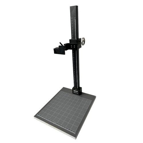 表面進行黑色氧化處理,帶有厘米/英寸刻度。上下傳動采用齒條齒輪結構,能調(diào)節(jié)松緊度,旋鈕把
