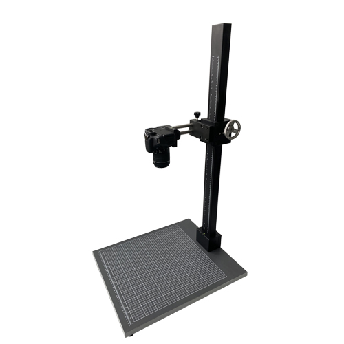 Monster5080D 采用不反光灰色木底板,表面帶有網(wǎng)格及厘米/英寸刻度。主桿采用鋁材料,表面進(jìn)行黑色氧化處理,帶有厘米/英寸刻度。上下傳動采用齒條齒輪結(jié)構(gòu),能調(diào)節(jié)松緊度,旋鈕把手采用不銹鋼材料,單手即可升高和降低相機(jī)的高度,固定相機(jī)拉伸臂可調(diào)節(jié)相機(jī)與主桿之間距離,前后拉伸約10cm,且轉(zhuǎn)接板可以上下傾斜-90°至+90°,轉(zhuǎn)接板帶1/4螺絲!