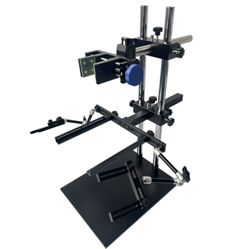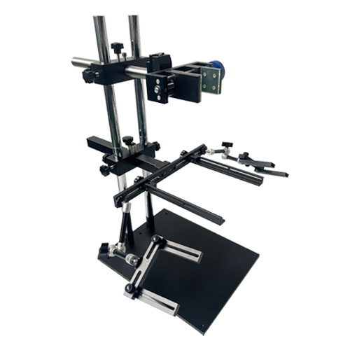 采用雙主桿結(jié)構(gòu),穩(wěn)定牢固。相機(jī)結(jié)構(gòu)采用精密燕尾槽滑臺,微調(diào)范圍:±35mm,相機(jī)