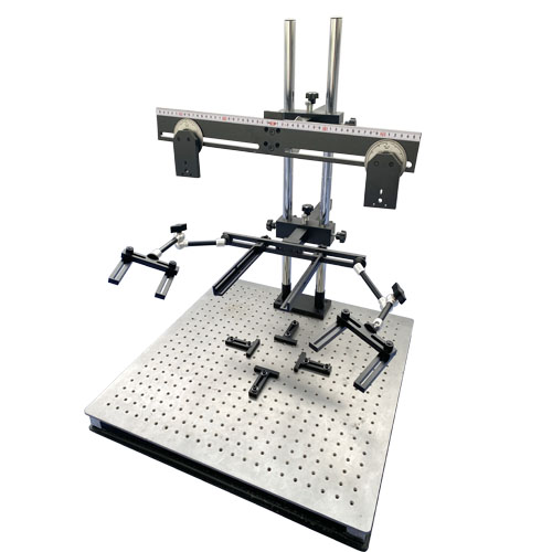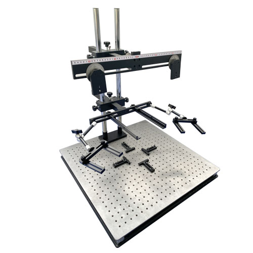 XCY-KD500-05雙目實驗平臺,采用光學(xué)面包板,表面帶有25*25mm間距M6螺紋孔陣列;鋁板,底板尺寸:600*600*50mm。面包板上帶有4個定位擋板,可以定位樣品。平臺帶刻度,可以讀取單個相機(jī)旋轉(zhuǎn)角度,2個相機(jī)整體上下傾斜角度,以及相機(jī)之間距離,能方便客戶讀取需要的數(shù)據(jù),相機(jī)固定部分能整體前后拉伸,主桿高度60cm,光源架安裝方式可以變化。