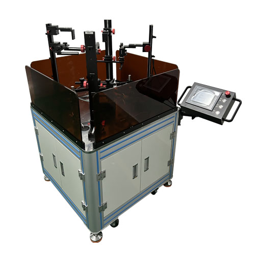 簡介:XCY-MR4HT-V2支架是一款旋轉(zhuǎn)平臺,采用臺達(dá)伺服電機(jī),配減速機(jī),轉(zhuǎn)盤采用光學(xué)透明玻璃,直徑φ400mm,采用PC軟件和觸摸屏調(diào)節(jié)參數(shù),平臺有連續(xù)運(yùn)動、等分運(yùn)動和定位運(yùn)動模式,轉(zhuǎn)速范圍0-300轉(zhuǎn)/分鐘,觸發(fā)信號可設(shè)置,4個相機(jī)固定模塊對應(yīng)有4個獨(dú)立光纖傳感器,傳感器可設(shè)置閥值,延時觸發(fā)等功能。相機(jī)支架采用燕尾槽主桿,齒輪齒條傳動,Z主桿500mm,X導(dǎo)軌200mm,相機(jī)采用螺絲固定,可以往前移動0-40mm。平臺底部采用鋁型材機(jī)柜,機(jī)柜4面固定有透明亞克力玻璃,用于安全防護(hù),該平臺可用于多個相機(jī)進(jìn)行旋轉(zhuǎn)運(yùn)動檢測實(shí)驗(yàn)。