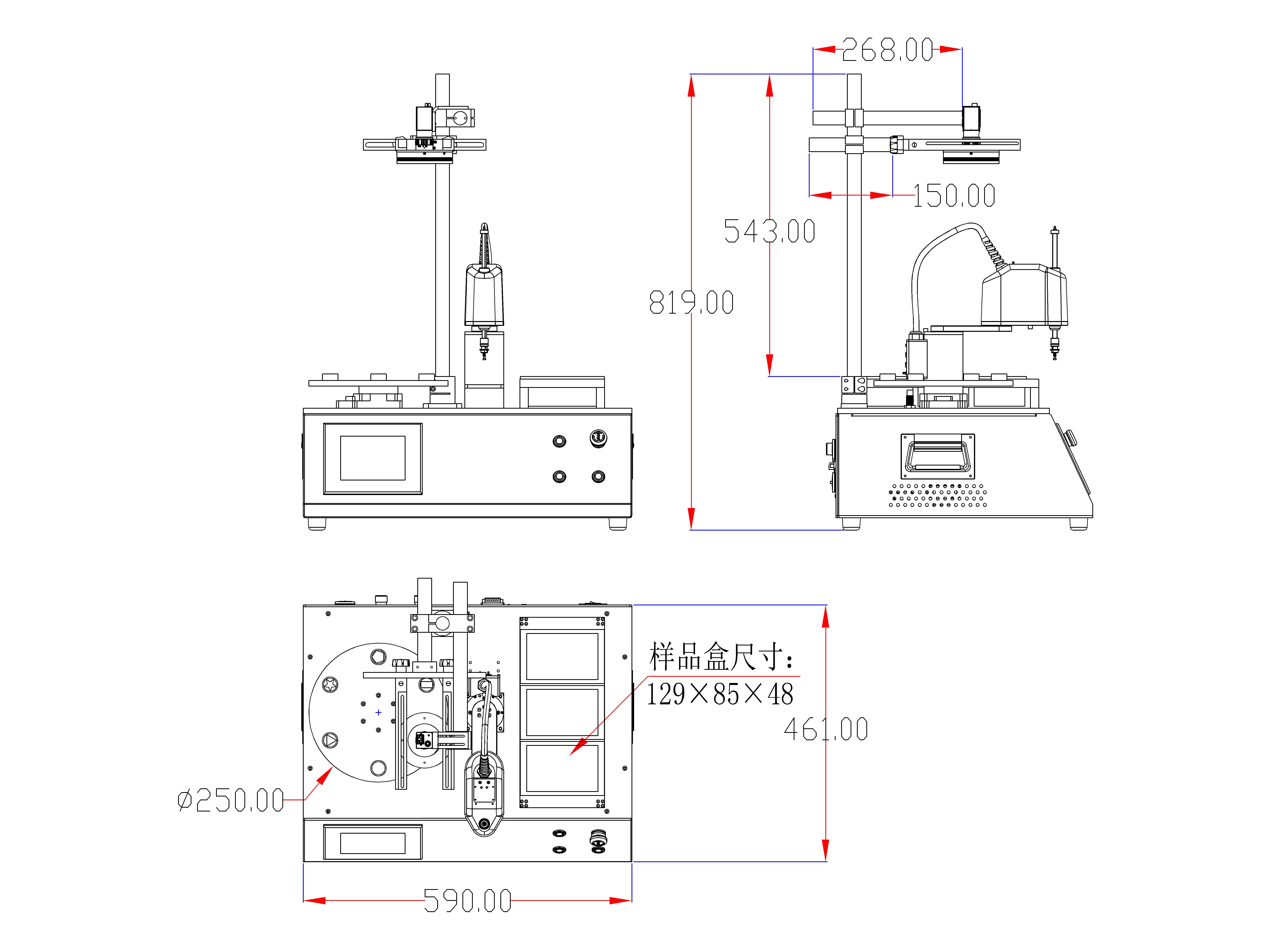 - 觸摸屏實現(xiàn)示教功能,通過獨立控制機械臂運動,獲取取樣點和收納A、B和C點